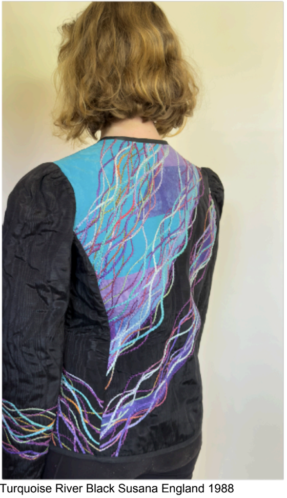 For Susana, the answer was to turn her art into something people could wear. In a small Berkeley apartment, she began dyeing batik fabrics, transforming silk and cotton into glowing, painterly garments. When Alexis Fretheim invited her to join the White Duck Workshop, Susana became one ofits original designers, creating bold caftans and coats inspired by folklore and fantasy. Their first season sold out — wearable art had found its moment, and Susana was among its pioneers. By the mid-1970s, she launched her own line, SUSANA ENGLAND Designs, blending quilting, appliqué, embroidery, and painterly whimsy into clothing that was less about fashion than expression. Her pieces graced the racks of I. Magnin, Macy’s Union Square, and Henri Bendel, and later, national buyers from Saks Fifth Avenue and Neiman Marcus brought her work to a wider stage. Each piece was stitched with color, courage, and a sense of freedom— wearable affirmations for those unafraid to stand apart. Over time, Susana’s vision expanded beyond fabric. She began creating wall pieces, handmade paper collages, and greeting cards. They captured her same vibrant storytelling. Her work found homes in the collections of Kaiser Permanente and Sutter Health, and her designswere licensed to Image Conscious, ApplejackArt Partners, Sunrise Greetings/Interart, and Barnes & Noble, among others. Whether in cloth or watercolor, she wove a thread of nostalgia — a longing for beauty that endures, even as the world rushes on. Now, in her eighth decade, Susana works from her Rockridge studio, painting and singing her way through the day. Her watercolor series In My Aunt’s Garden hangs at the Acre Gallery, luminous with starlight and memory. She describes her current practice as “art for me” — yet it radiates outward, inviting others to live with color, courage, and joy. “I still wake with imagination and a paintbrush in hand,” she says. “This creative force — it’s addictive. May I continue on the path I started so long ago.”